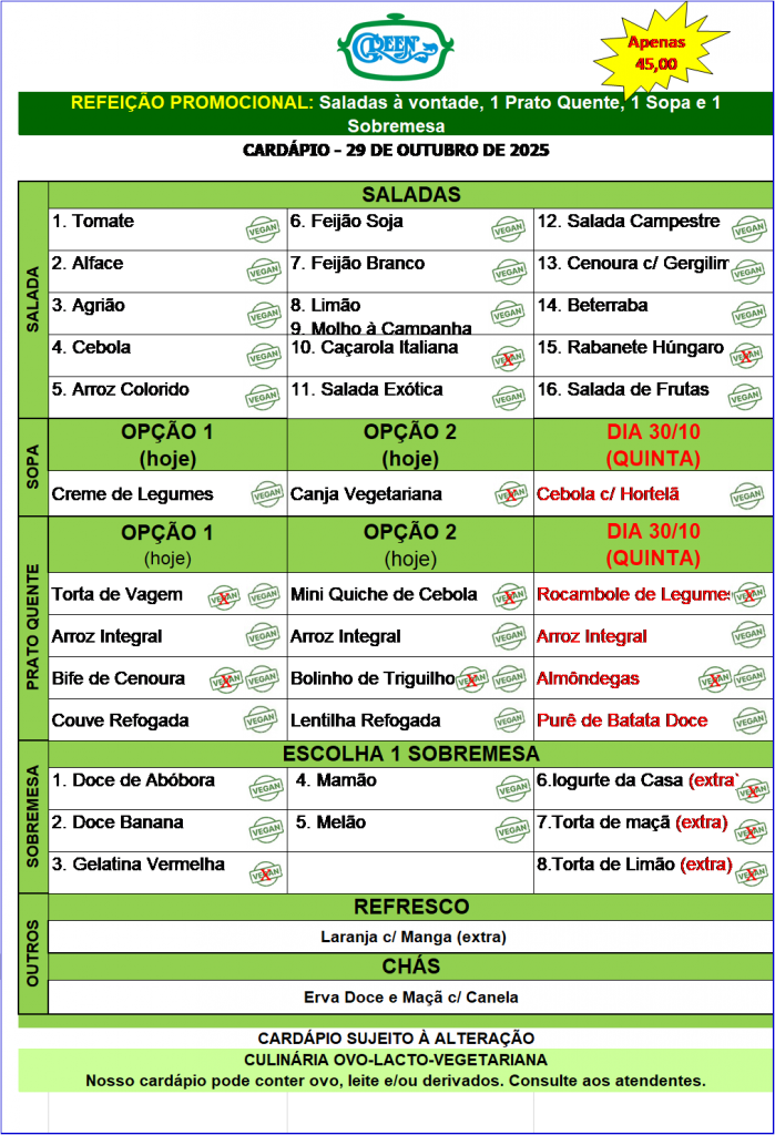Localizado no coração do centro histórico do Rio de Janeiro, Green Restaurante Vegetariano, oferece, desde 1981, refeições ovo-lacto-vegetarianas, leves, saudáveis, balanceadas e principalmente saborosas, procurando aliar o sabor, a qualidade de vida e o bem-estar dos clientes.
