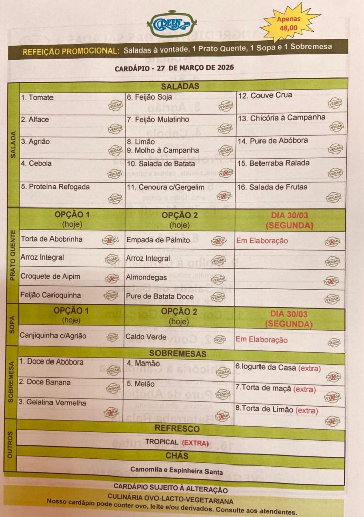 Saladas do dia 27/03.