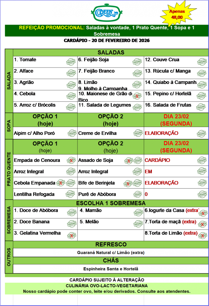 Localizado no coração do centro histórico do Rio de Janeiro, Green Restaurante Vegetariano, oferece, desde 1981, refeições ovo-lacto-vegetarianas, leves, saudáveis, balanceadas e principalmente saborosas, procurando aliar o sabor, a qualidade de vida e o bem-estar dos clientes.